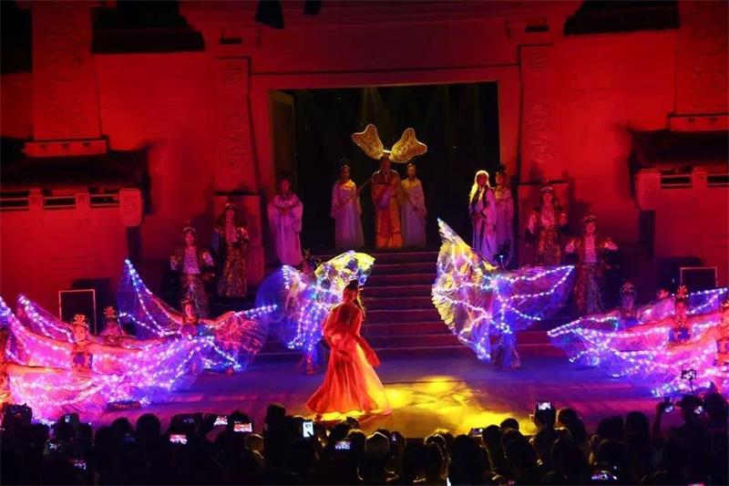 相比老银川一条街的恬静,清城堡让你领略到的是截然不同的繁华与热闹。十多位古代艺伎翩翩起舞、伴随着悠扬的乐曲,花魁从巨型莲花中缓缓绽放,给人一种唯美的享受。