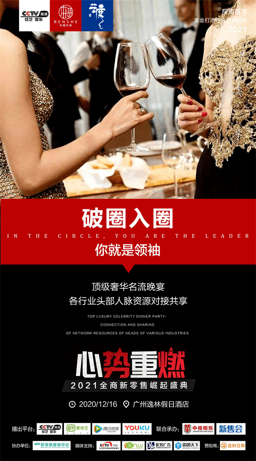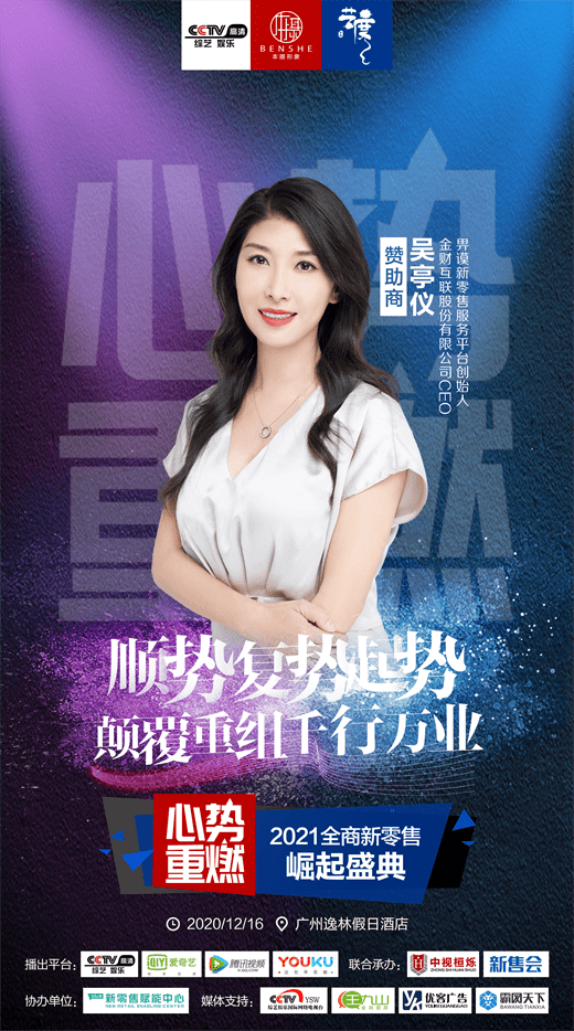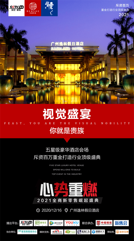 2020年首届全商新零售崛起盛典大会,2020年月12日16日将在广州隆重举行。本届盛典由本摄传媒 、艺度广告主办,新零售赋能中心协办,A股上市企业金财互联鼎力支持。
