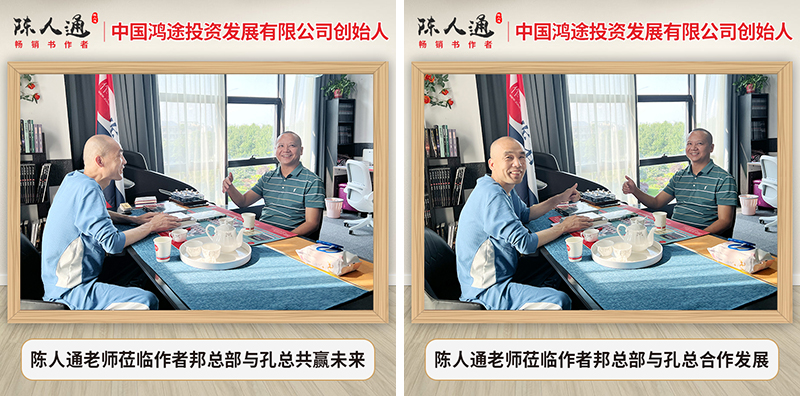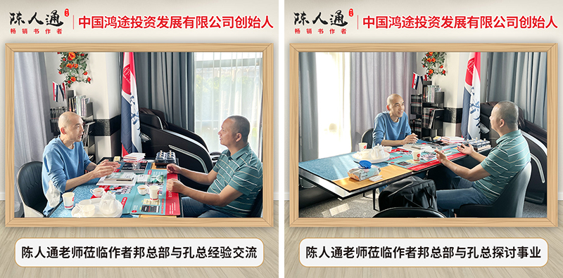 近日,中国鸿途投资发展有限公司创始人兼董事局主席陈人通老师,莅临作者邦总部会见孔斌老师,双方就共赢、共发展、共未来等方面进行了意见交流和沟通探讨。