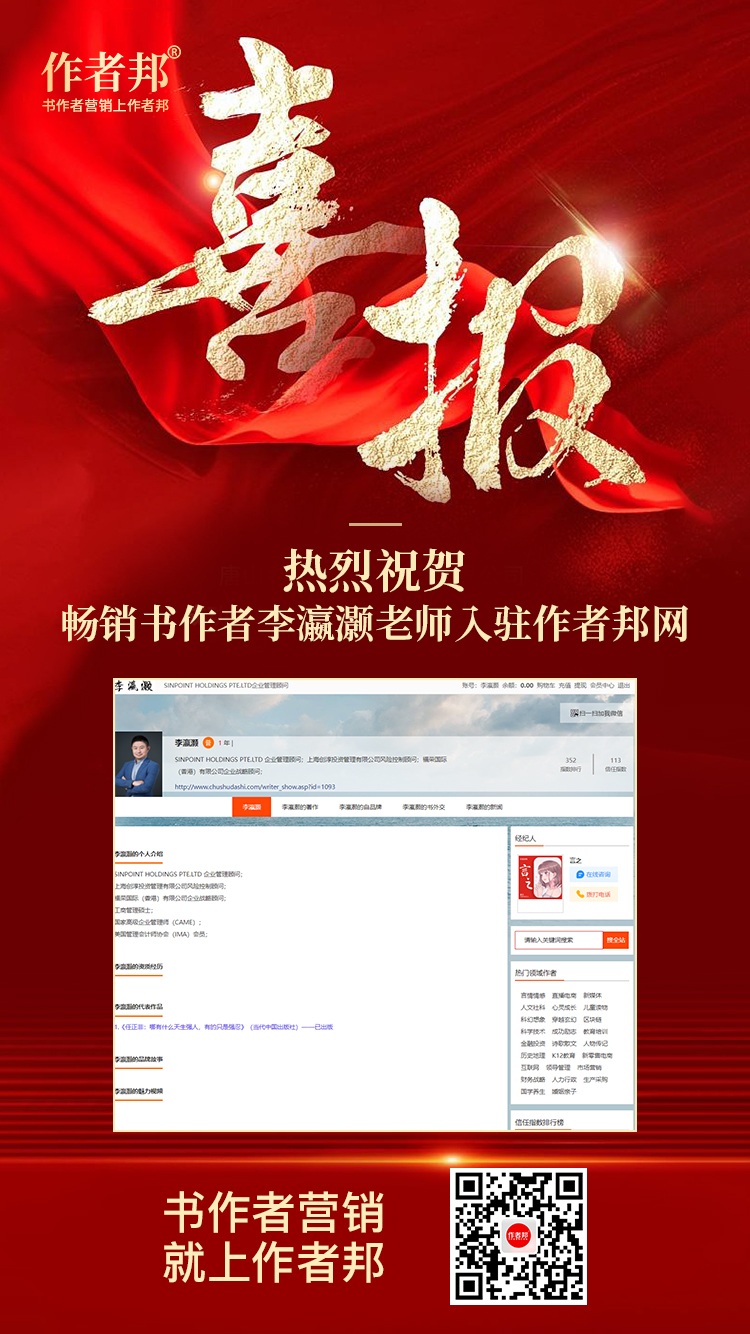近日,国家高级企业管理师李瀛灏老师正式入驻作者邦网,不仅在个人品牌的传播和提升上,实现了较大的飞跃,更在自身的行业影响力上,获得了全面的助力与升华。由此,为其自身的品牌积累和优化,提供了较为全面的铺垫和基础。