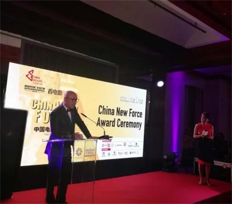 传奇军团创始人赵亦灵(左二)与与巴黎中国电影节创办人高淳芳(Deanna Gao)、世界电影协会创办人安东尼(Antonio Gel)、爱瓦娱乐总裁何影等一起出席“北京之夜”