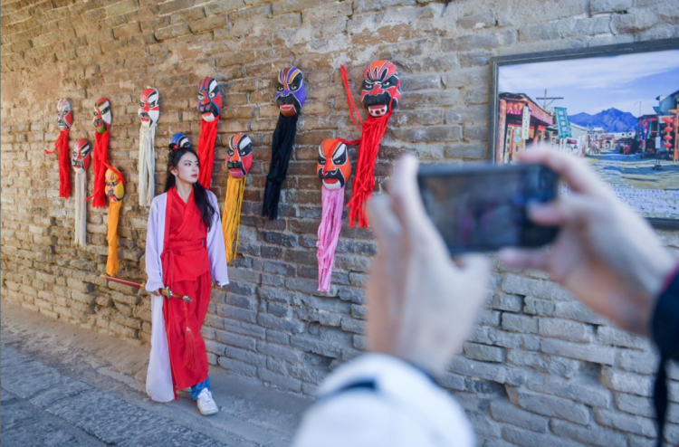 幸运之门内,不时有“紫霞”路过。游客身着戏服,精心装扮,体验“来时是游客,走时成明星”的快乐。