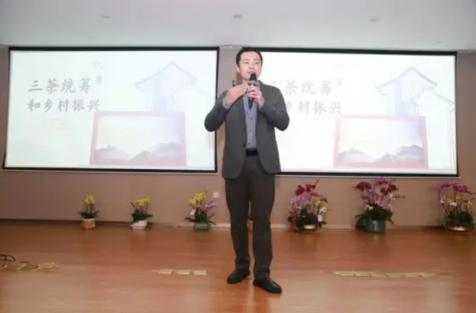 华饮(北京)科技股份有限公司董事长,茶产业天使投资人,北京广西商会副会长,清华大学教育学硕士/传播学博士李卓澄,结合习近平总书记在福建考察茶产业时指出:“要把茶文化、茶产业、茶科技统筹起来,过去茶产业是你们这里脱贫攻坚的支柱产业,今后要成为乡村振兴的支柱产业。“就茶产业与乡村振兴融合发展,畅谈了“三茶统筹与乡村振兴“发展思路的新见解,提出了发展茶产业是乡村振兴的重要抓手。作为在北京的广西南宁人,李卓澄表示其作为水木华饮茶馆连锁创始人,金米天成茶业数字化联合创始人,中国百强特色茶馆组委会执行主编,将发挥其在茶饮行业丰富理论和实战经验,助力茶产业发展,积极推动六堡茶文化走向全国,他给广西六堡茶走向全国提供了宝贵的建议及解决问题的新路径和新思考,也给大家提供更多的启发和思考。