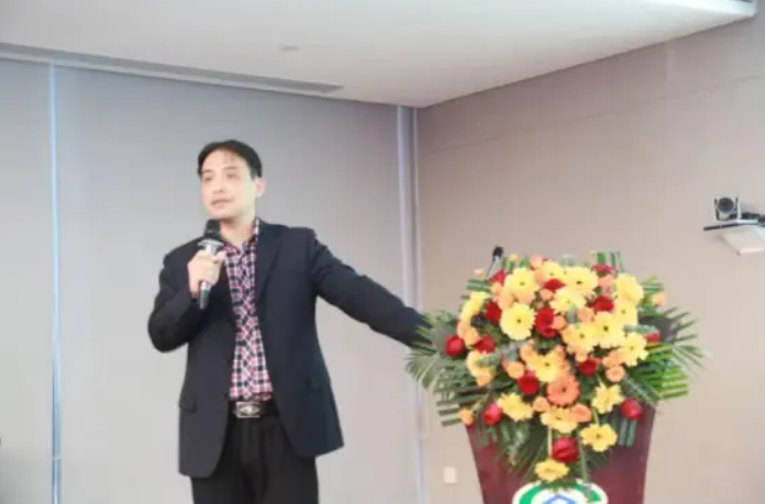 图为:广西到校外科技有限公司总经理邓占儒进行主题分享