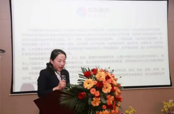 图为:广西中科融创科技企业孵化有限公司董事长助理黄馨慧进行主题交流