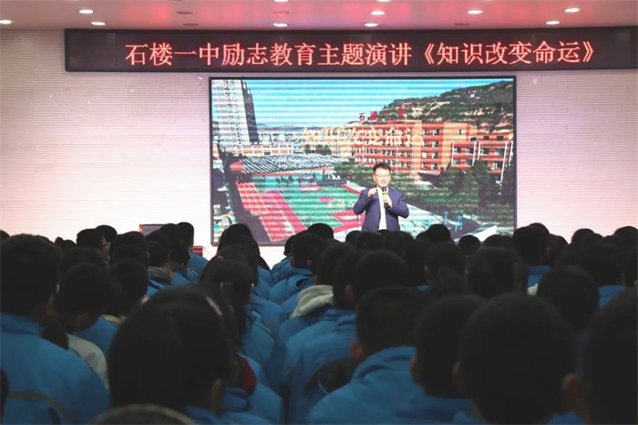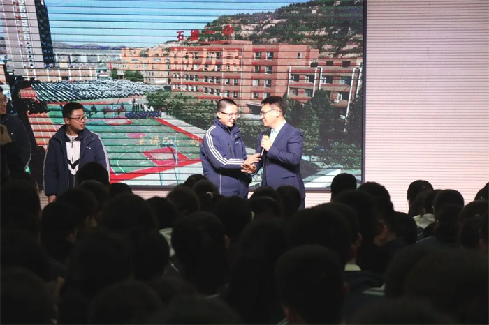 主讲人刘小军是石楼一中校友,从事青少年心理成长与演讲口才教学19年。他用自己的亲身经历,向学生们讲述了