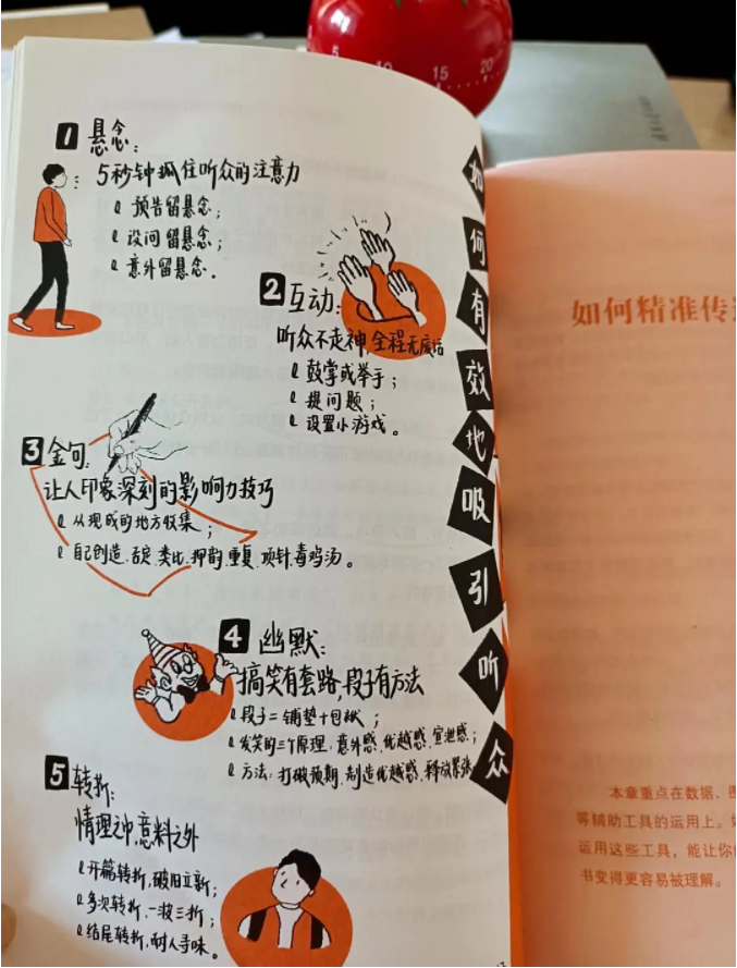 讲书是将书中的精髓讲出来的,而这就离不开对书的内容的精准传递。这就要学会使用辅助工具,比如说数据,图表,视频和道具类比等方式,不仅能够更方便传递书中的内容,也会容易让读者理解,讲述的内容不易跑偏。