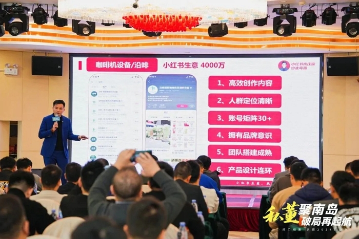 因为参会嘉宾的主营业务基本都集中在短剧、小红书、视频号、私域电商、直播带货领域,所以本次闭门会邀请了小红书矩阵和短视频直播的两位实操大咖来分享干货,现场私董频频拍照记录,反响热烈。