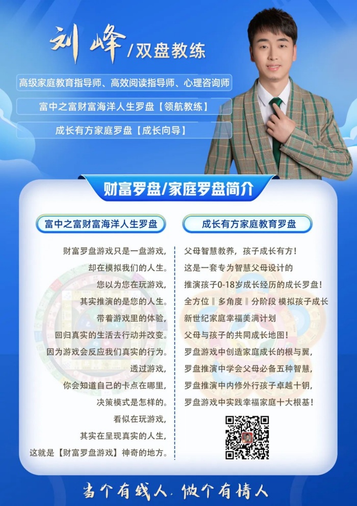 本书在出版的过程中,因为个别词汇受出版的限制做了调整,但是本书的创造源泉全都来自于富中之富财富海洋人生罗盘的游戏沙盘以及家庭教育成长罗盘。