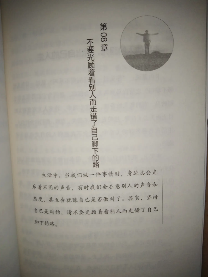 新颖醒目的章节题目,直截了当告诉你人生道理,提出疑问,又给予你答案,直戳重点,解答你的疑惑,引起你的共鸣。每一章的导语更是坚定的告诉我们,你应该怎么做,不做的话结果会是怎样,语言坚韧有力,绝不拖泥带水。