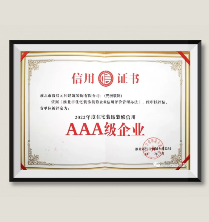 为进一步加强我市住宅装饰装修企业信用管理,在出台《淮北市建筑装饰装修管理条例》的基础上,市住房和城乡建设局于2022年又出台了《淮北市住宅装修企业信用评价管理办法》,旨在对我市住宅装饰装修企业的经营状况、人员素质、制度建设、行业表现、社会信誉等方面开展综合信用评价。《办法》规定,淮北市住宅装饰装修企业信用等级共分为AAA 级(优秀)、AA级(良好)、A级(合格)、B级(不合格)四个级别。《办法》要求,各级主管部门应将企业信用评价结果作为市场准入、政策扶持、创优评先、表彰奖励的重要依据,对不合格企业应依法依规采取约束、惩戒措施,并及时向行业及其上下游产业、有关政府部门、金融机构提供企业信用信息,推广信用评价结果,增强企业的市场开拓能力,服务政府的宏观管理,促进市场秩序规范和行业发展。《淮北市住宅装修企业信用评价管理办法》颁布后,淮北市住建局在家装行业开展信用建设,打造信用品牌,引导和规范装饰装修行业市场经营秩序,取得了一定的效果。希望全市装饰装修企业都能以信用优秀单位为榜样,自律、积极进取,努力争创淮北市住宅装饰企业“AAA”级信用评价。同时提醒广大业主,在进行装修消费前,最好能先到政府网站查询一下装饰企业信用评价结果,尽量选择信用评价级别高的装饰企业,这样才更有保障。