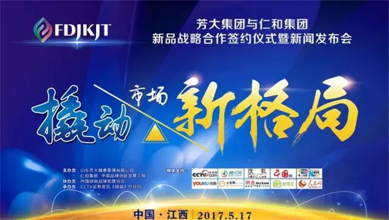 2017年5月17日,芳大集团与仁和集团的新品战略合作签约仪式暨新闻发布会在江西省宜春樟树市仁和集团会议室隆重举行。芳大集团董事长、FD团队创始人吴小芳女士、仁和集团副总裁兼仁和堂总经理刘英女士、中国品牌创新发展工程副秘书长耿德亚先生、芳大集团运营总监杜莹贤先生、仁和堂副总经理柯敏超先生,仁和堂品牌总监李欣女士,仁和堂推广总监李琴女士以及近二百名FD团队高层出席了本次活动。央视网、人民网、新华网、腾讯网、搜狐、中国网、优酷、土豆、网易、爱奇艺等数十家媒体对本次活动予以支持.