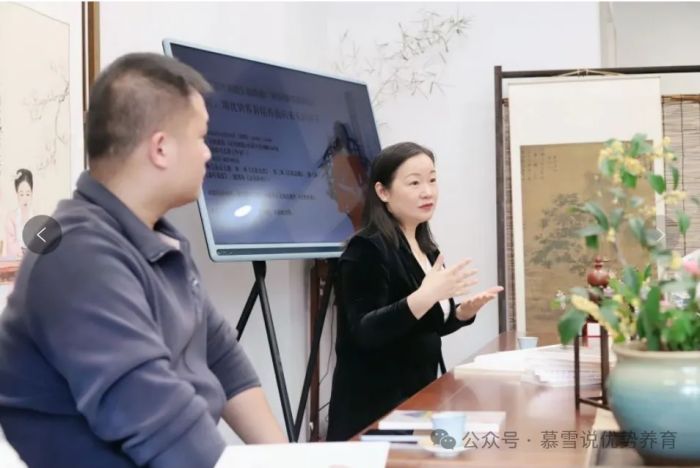 最后,慕雪老师为每一位茶友的《优势养育》的书签名,签名书全世界只有一本独一无二的珍贵,值得收藏。宋博士赠送了一本签名版的《点茶师》给慕雪老师,在专业摄影师的镜头里,把大家在秋日下午浓郁书香学习的场景永久的保存下来。