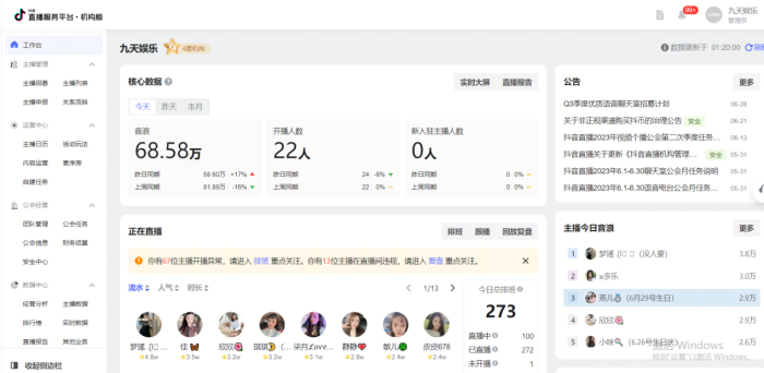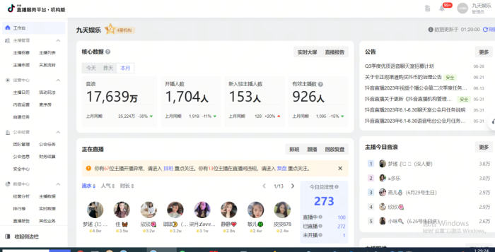 月音浪交易流水过亿(15个同样工会后台——如下图所示)