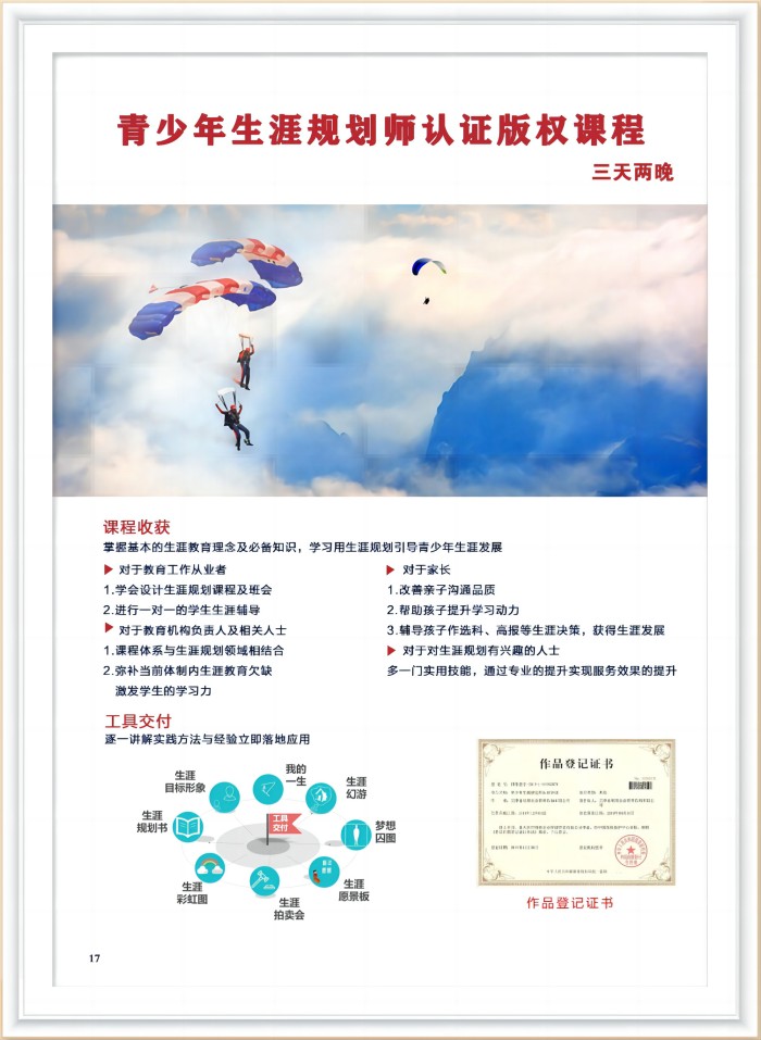 3.认证资质获取:课程学习结束并通过相关考核后,学员可以获得青少年生涯规划师的认证资质,这是对学员专业能力的认可,也为他们在青少年生涯规划领域的职业发展提供了有力的支持。