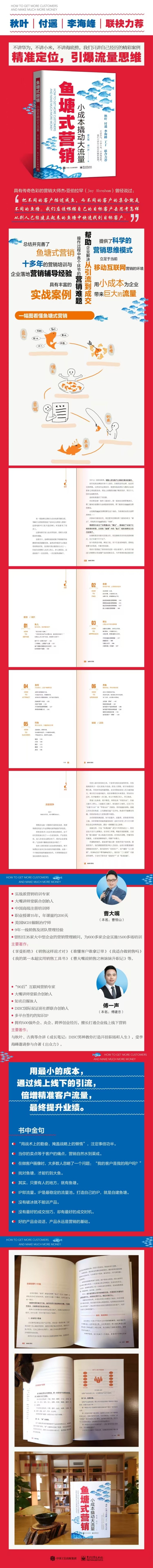 傅一声:《鱼塘式营销:小成本撬动大流量》本书所讲的鱼塘式营销,主要就是帮助中小企业、门店连锁类企业、创业者解决一个重要的痛点:流量。