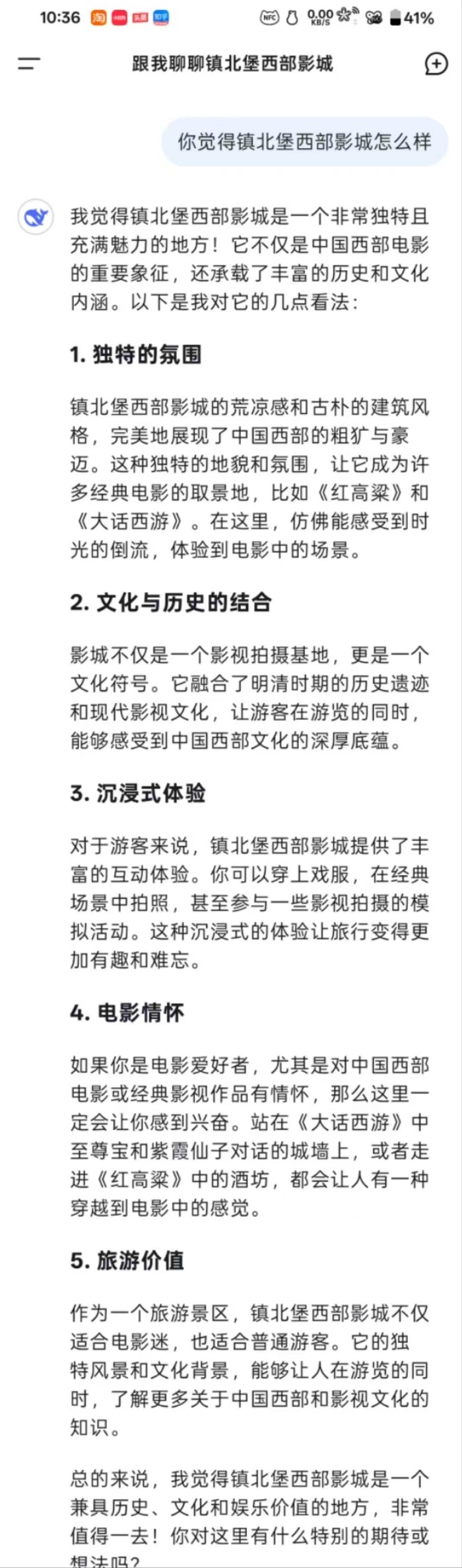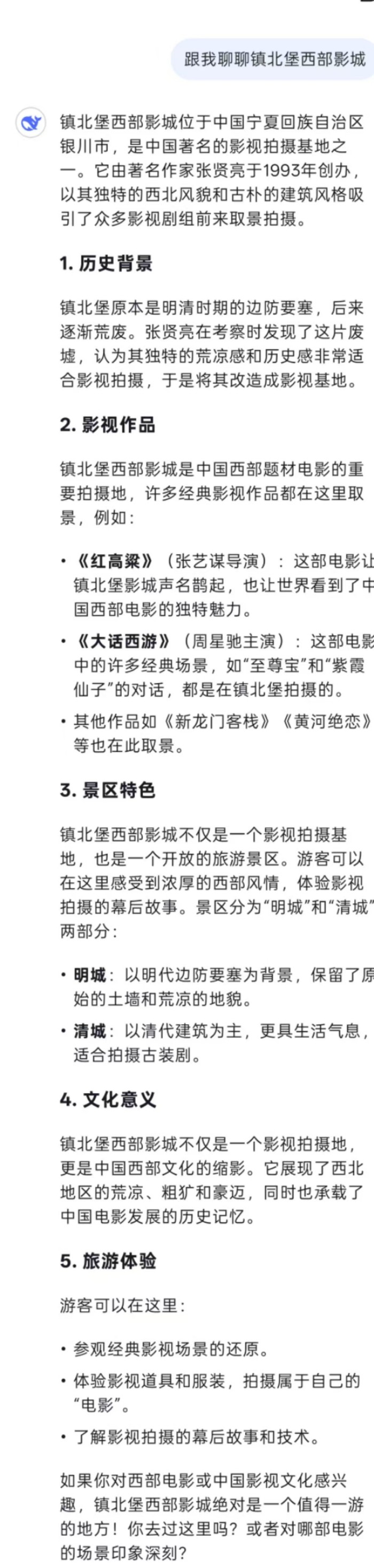 春节期间,中国AI——DeepSeek突然火爆全网,引发高度关注,被网友称为“神秘东方力量”,那么今天我们和“DeepSeek”聊聊镇北堡西部影城.。