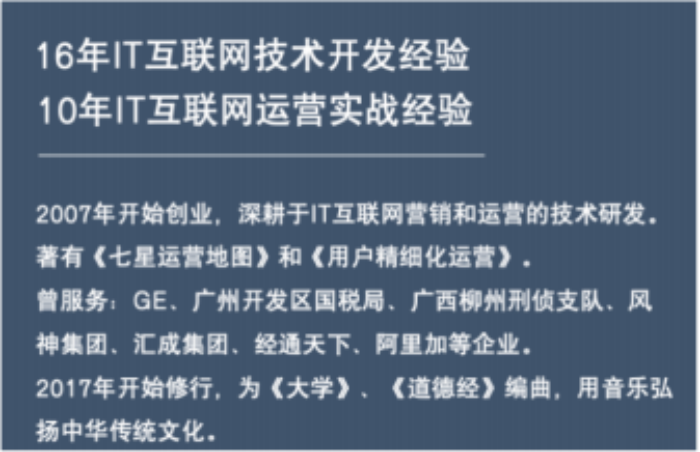 所有企业拥有软件著作权超过50个。写有畅销书《用户精细化运营》,还是国 内知名的音乐创作人。