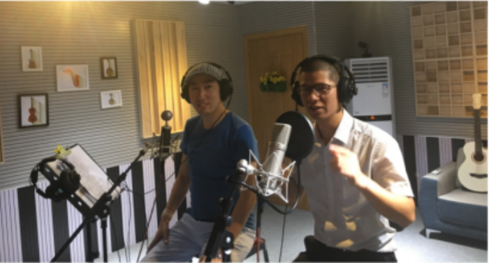 (图二:我与周文强老师在录制中国梦)