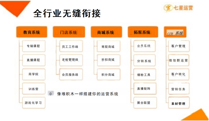 打造私域直播系统,用分销系统,进行私域裂变!当然,仅用分销是不够的, 任何现象级的裂变,都离不开七星运营的框架体系,接下来我按七星运营体系来 分析周文强的从0到1都做了什么。