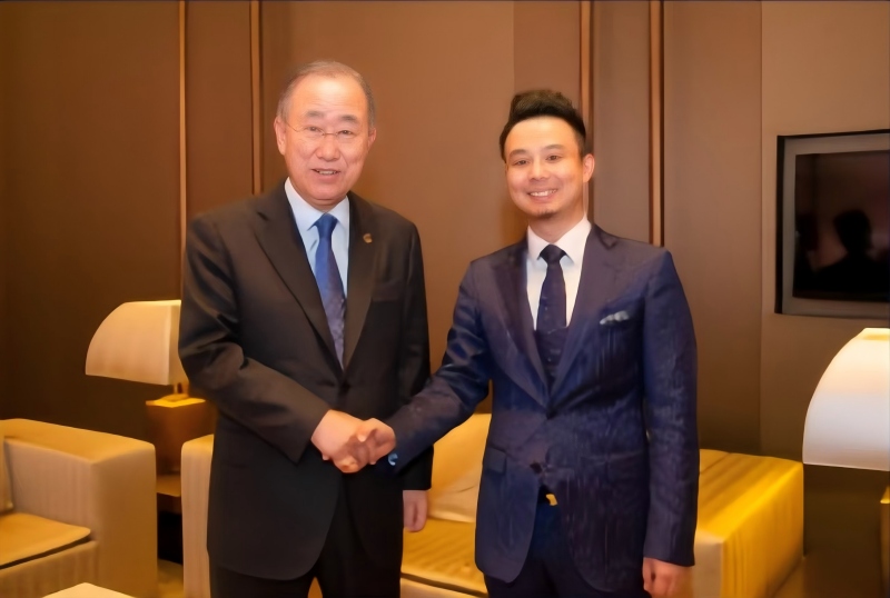 (董事长程鹏飞先生(右)和联合国第八任秘书长潘基文先生合影)