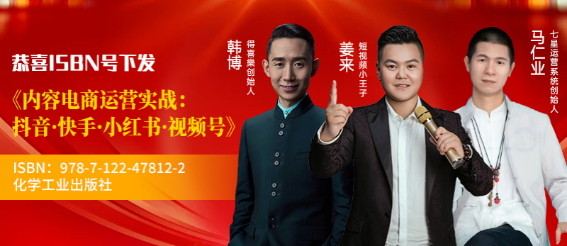 近日,由出书大师策划、中国北京化学工业出版社出版、互联网营销领域三位重量级专家姜来、韩博、马仁业联合创作的《内容电商运营实战:抖音·快手·小红书·视频号》一书已正式获得ISBN书号,即将与广大读者见面。这部凝聚三位作者多年实战经验的力作,将为内容电商从业者提供从平台规则到实战技巧的全方位指导,助力企业在数字化营销浪潮中抢占先机。
