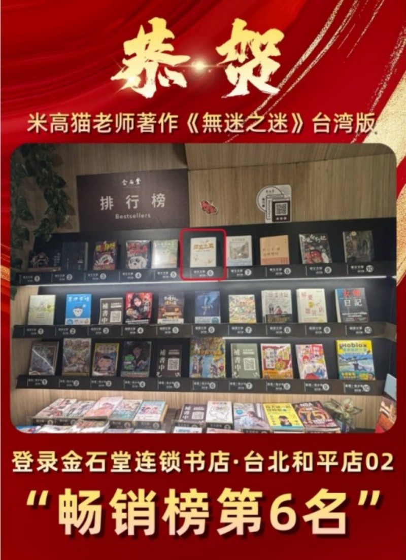 金石堂遍布全岛的百家门店,为《無迷之迷》提供了绝佳的展示平台。借助金石堂的品牌影响力和庞大读者群体,米高猫的作品得以覆盖更广泛的受众,进一步提升其在华语科幻文学领域的知名度。