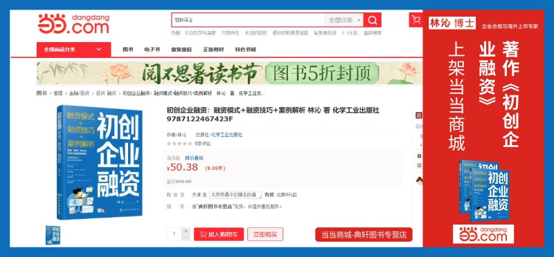 林沁博士全新力作《初创企业融资》近日在当当、天猫、淘宝、京东四大平台同步上市,为创业者带来一场融资知识的饕餮盛宴。本书突破传统融资书籍的理论框架,独创"知识+工具+案例"三位一体的实战体系,直击初创企业融资过程中的真实痛点。