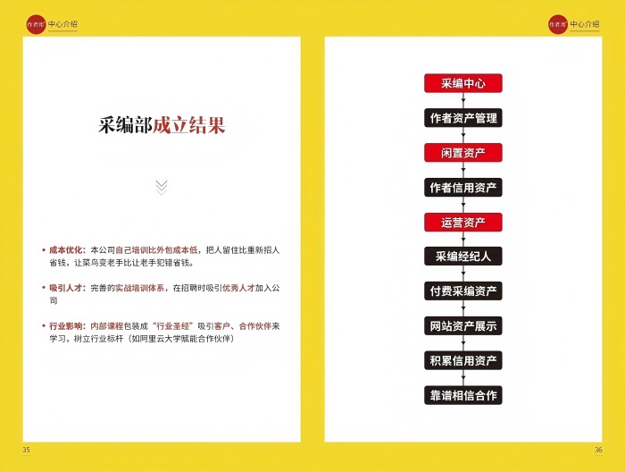 三大核心价值,成本优化:自主培训采编经纪人,比外包更省钱;长期培养人才,降低招聘成本;通过完善的培训体系,让新人快速成长,减少错误成本。
