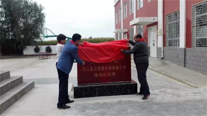 宁夏青基会秘书长、宁夏希望工程办公室主任刘升祥在讲话中对镇北堡西部影城的善举表示了高度赞扬及诚挚的谢意。吴忠市非公有制经济组织党工委专职副书记马久麟为宁夏华夏西部影视城有限公司颁发了“捐资助学献爱心、凝心聚力助脱贫”的爱心牌匾。随后,与会领导和嘉宾来到“西部影视城同心县王团镇沟南希望小学碑记”前,共同为学校揭幕。