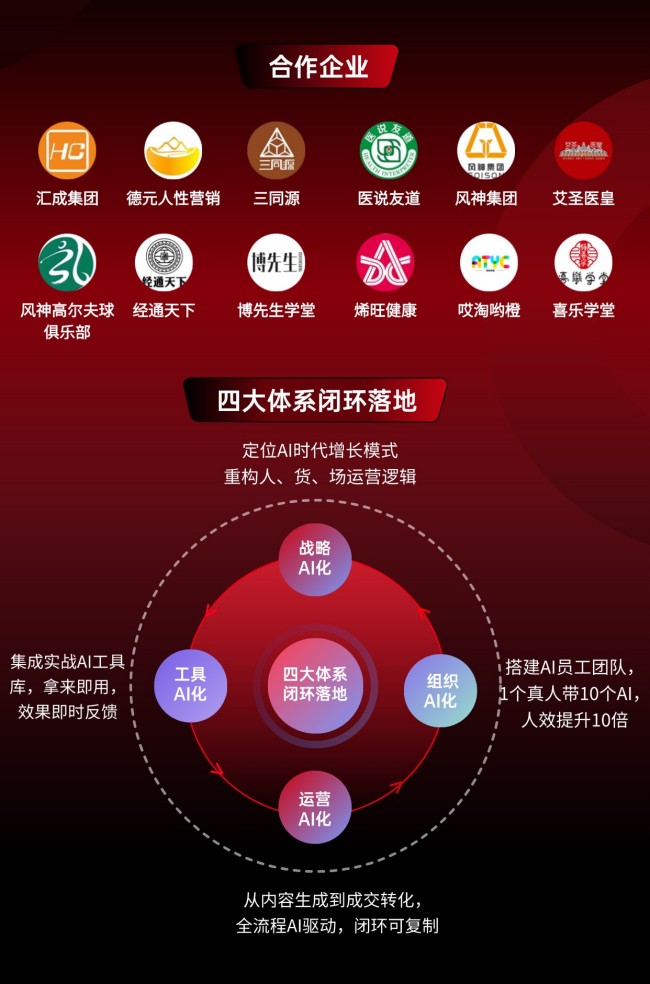 姜来公司还推出陪跑产品模型:招商落地陪跑,为企业设计盈利模型和商业模式,定制会销招商系统让企业现金流快速增长,全国合作商家增长;双域落地陪跑,为企业设计线上和线下的商业模式,定制会销招商系统,沙龙结构,直播矩阵卖货剧本,线上裂变系统;矩阵落地陪跑,完整的陪跑流程,帮你造势,帮你招商定战略(出方案)->造势->建系统->招商->融资->训领袖->做矩阵以1亿为目标,3个月陪跑领航,3年咨询服务赠送价值20万的工具系统。