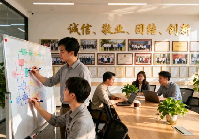 例如,他运用“太极”思想,强调企业是一个有机整体,部门之间如阴阳两极,既对立又统一,需要协同共生而非零和竞争。他倡导“元亨利贞”的企业精神——“元”代表创始与创新,“亨”代表通达与顺畅,“利”代表和谐与获益,“贞”代表正固与坚守,这为企业树立了从创业到守成,再到持续发展的核心价值导向。
