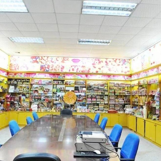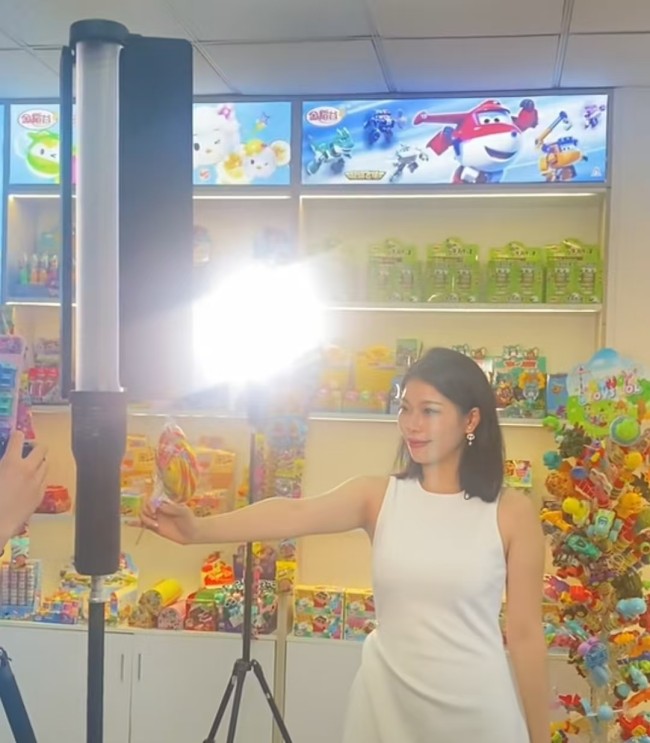 走进金稻谷的产品展示间,这里便是拍摄的核心场地,本身就是一个微缩的童话王国。四周陈列着各式各样卡通造型的糖果与零食,从憨态可掬的动物形象,到英勇帅气的动漫英雄,色彩斑斓,琳琅满目。模特置身其中,仿佛成为了这个糖果王国的代言人。她的展示,不是机械的推销,而是沉浸式的分享。当她拿起一颗软糖,眼中闪烁的光芒与孩子收到礼物时的惊喜别无二致;当她介绍一款新口味的棒棒糖,语气里的兴奋足以感染任何一位观众。