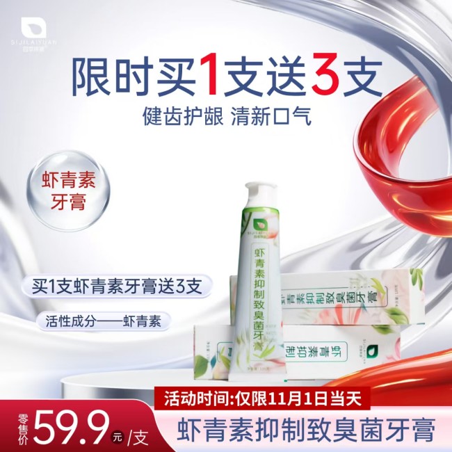 更令人惊喜的是,虾青素牙膏竟然买一送三!一支的价格,带走四支牙膏,这样的优惠实在难得。想象一下,未来几个月你都不需要再为牙膏发愁了,而且还能体验虾青素带来的美白护龈功效。