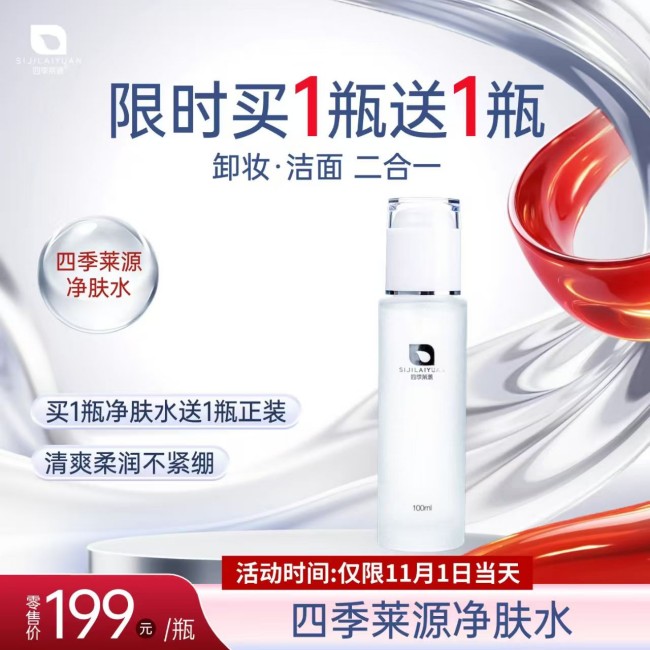 时光流转,双十一的号角再次吹响。这是一场购物者的狂欢,更是一次不容错过的护肤良机。四季莱源,始终致力于为您提供肌肤本源之美的护肤品牌,在此初冬时节,隆重推出“双11钜惠购”活动。我们深知,一次真正的肌肤焕新,远比无数次的盲目堆砌更为重要。因此,我们倾情奉上年度仅此一次的超级福利:11月1日当天,明星产品——净源透润净肤水,买一送一! 这不仅是一次价格的让利,更是一份对您肌肤健康越冬的郑重承诺。错过此刻,唯有再等一年!
