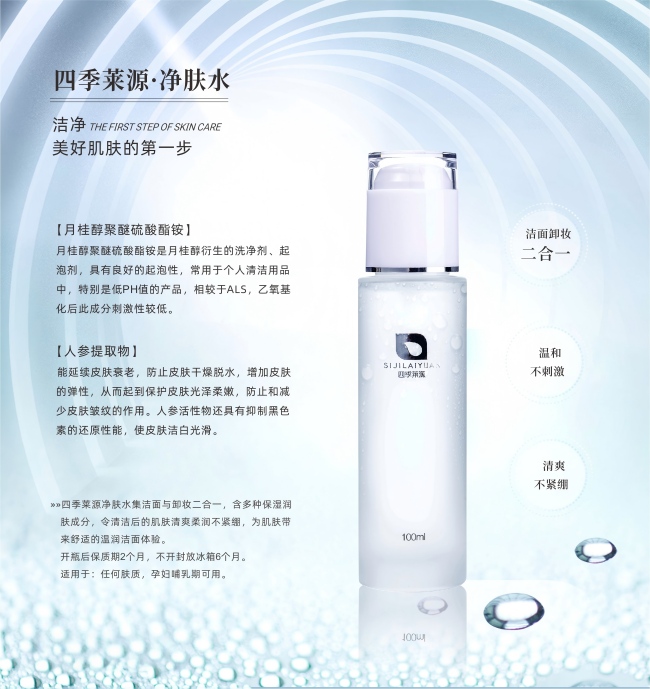 干燥与污染并存的冬季,不应成为您肌肤的负担季。选择四季莱源净肤水,就是选择一种更智慧、更温和、更有效的护肤方式。它不仅仅是一瓶清洁产品,更是您冬日护肤流程中承前启后的关键一环,是后续昂贵精华与面霜功效得以最大化发挥的坚实基石。
