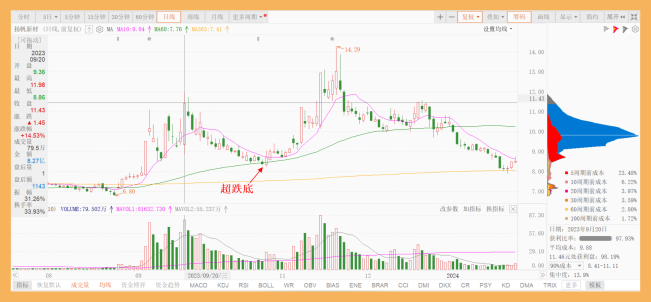 巨大的下跌幅度:“超跌期间股价下跌幅度必须很大,一般都会超过多数持股投资者的预期。”她分析道,这种超预期的跌幅导致投资者在短时间内因恐惧而快速抛售股票,从而为市场创造了“真空区”。一旦抛压稍缓,任何轻微的买盘都容易引发技术性的反弹,这个反弹起点便是底部的雏形。