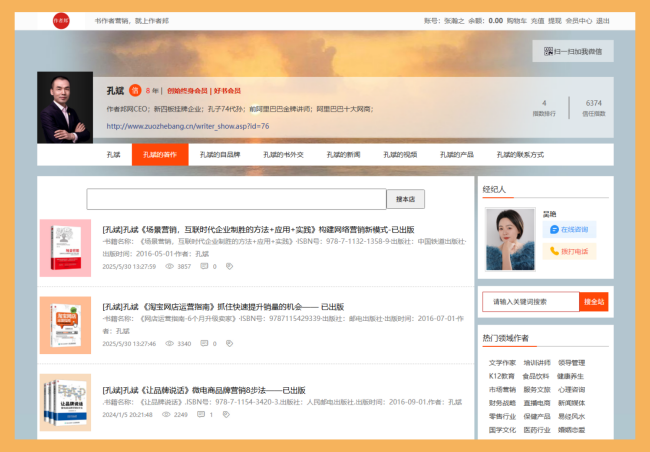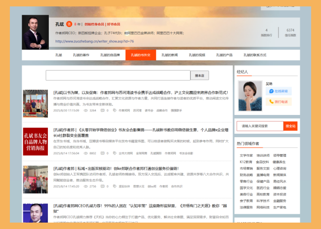 在数字化时代,书作者不仅需要创作优秀的作品,还需要管理自己的个人信息、作品数据、品牌形象等。这些信息包括个人简介、著作列表、新闻动态、联系方式等,它们不仅是作者与读者沟通的桥梁,更是构建个人品牌和实现商业价值的基础。然而,传统的信息保存方式,如纸质档案、分散的电子文档或社交媒体平台,往往存在易丢失、难管理、缺乏整合性等问题。例如,社交媒体上的信息可能被平台算法淹没,而个人电脑中的文件则容易因设备故障而丢失。因此,书作者急需一个专业、集中且持久的平台来保存和管理这些信息,以实现长期品牌建设和数据资产积累。今天,我将为大家介绍一个集展示、分类、销售功能于一身的专业网站——作者邦网,它能够完美解决书作者信息保存的难题。