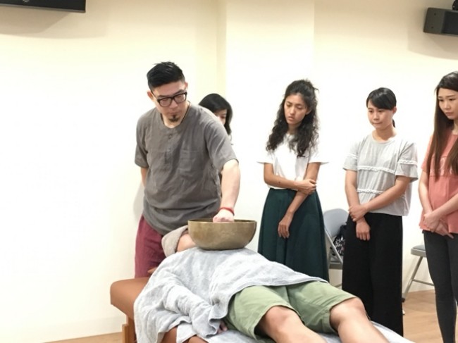 “声灸疗愈法”是杨裕仲的匠心结晶,它基于自然医学原理和解剖学知识,以敲击音钵产生的物理震动为核心,通过非侵入方式放松人体肌筋膜,达到“不医、不药、非诊、非疗”的保健效果。杨裕仲在演示中强调,参与者只需放松感受声波穿透身体的钵声,便能体验到震动带来的深层放松。这种方法不仅缓解压力、改善身体僵硬,还能提升自我调节能力,契合现代人“预防优于治疗”的健康理念。杨裕仲认为,声灸疗愈不是替代传统医疗,而是补充,它让人们在快节奏生活中找到内在平衡。