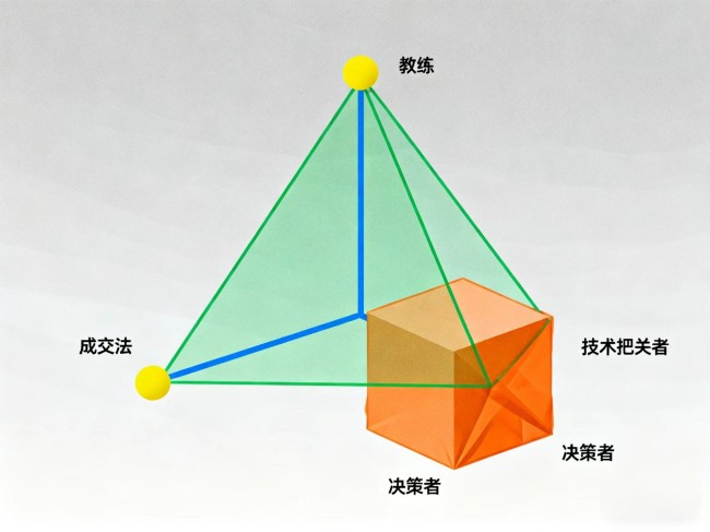 教练——销售人员在客户内部的向导和支持者,他们提供内部信息,指导销售策略。教练可能是产品使用者,也可能是其他角色,他们是销售成功的贵人。