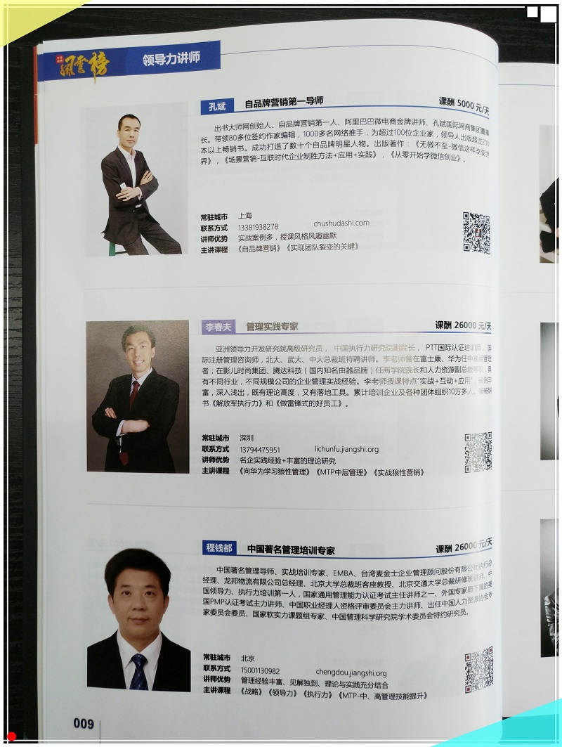 孔斌老师的授课风格风趣幽默、深入浅出、条理清楚、层层剖析、环环相扣。在主讲课程《自品牌营销》和《实现团队裂变的关键》中实战案例众多、形象生动,就如何抓住信息时代的优势,更快更好地提高企业竞争力进行了阐述,并且重点谈论了创业者出书,塑造个人品牌的重要性。受到了很多前来听课的企业家的一致赞赏,如今孔斌老师再次夺得500强讲师荣誉称号,更是对他实力的肯定。