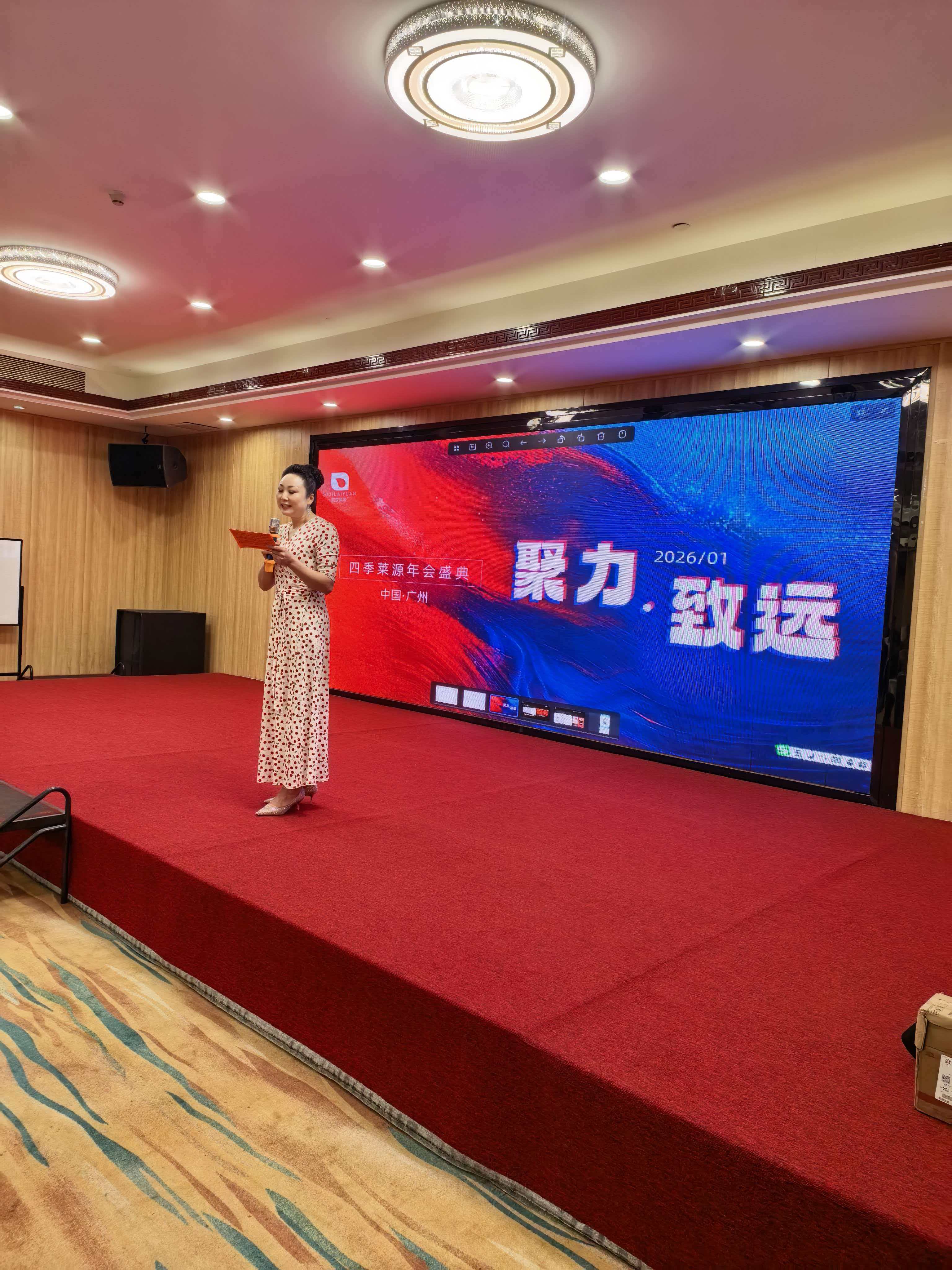 2026年1月7日,四季莱源11周年庆典晚会在广州盛大举办。现场灯火璀璨、气氛热烈,企业领 导、全国各地代理商及核心合作伙伴齐聚一堂,共庆这一里程碑时刻。