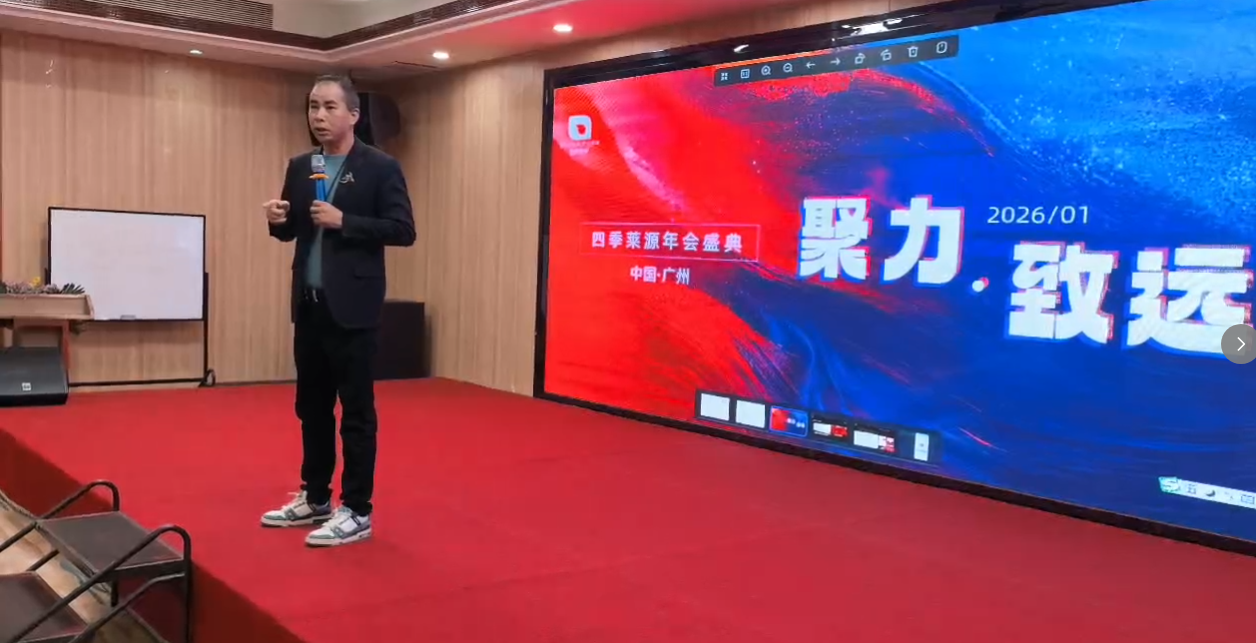 四季莱源运营总监叶金朝登台致辞,向支持企业发展的代理商与合作伙伴致以诚挚谢意。他回顾了企业