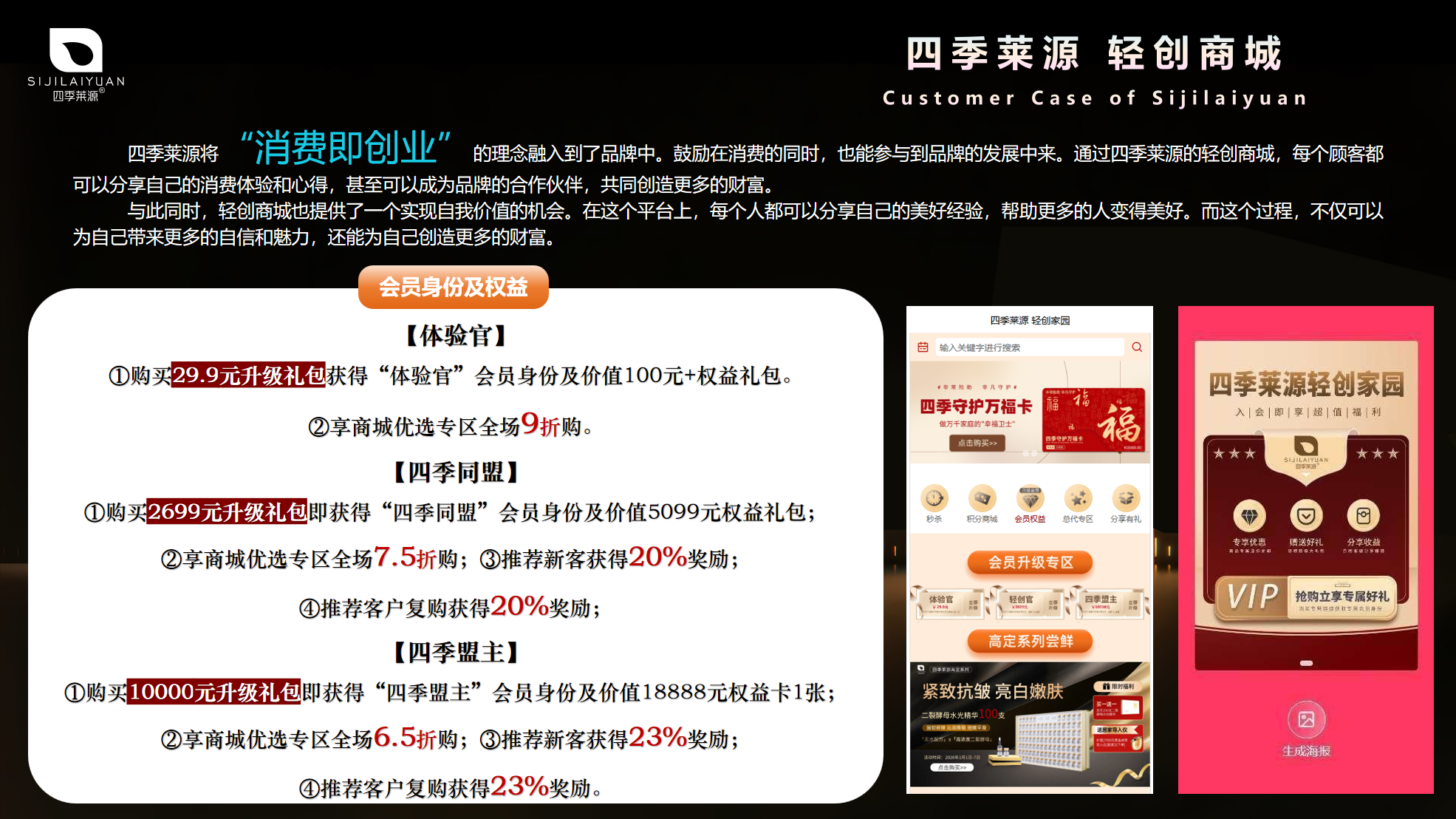 借此庆典契机,四季莱源向广大创业者发出诚挚加盟邀请。依托十一载品牌实力、成熟运营体系与优质产品矩阵,企业已搭建坚实创业平台,将为加盟伙伴提供全流程扶持,涵盖品牌培训、市场推广、运营指导与供应链保障,助力快速起步盈利。期待更多创业者加入,与现有伙伴携手共拓市场、共享成果。