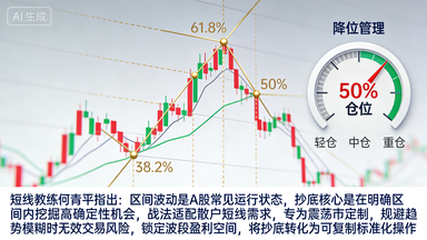 短线教练何青平指出,区间波动是A股最常见的运行状态,抄底核心绝非盲目猜底,而是在明确区间内挖掘高确定性机会。这套战法精准适配散户短线需求,专为震荡市定制,既能规避趋势模糊时的无效交易风险,又能锁定波段盈利空间。战法以指数规律和斐波那契比例为核心,搭配严格仓位管理,将抄底从“凭感觉”转化为可复制的标准化操作,帮助散户跳出追涨杀跌误区,用纪律锁定底部红利。