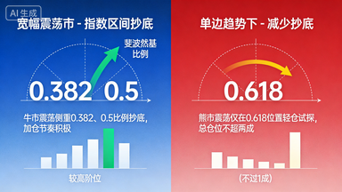 任何战法都需适配市场,灵活调整方可提升胜率。何青平提醒,指数区间抄底适合宽幅震荡市,单边趋势下需减少抄底;斐波那契比例可依回调深度选用。牛市震荡风险低,可侧重0.382、0.5比例抄底,加仓节奏可积极;熊市震荡不确定性强,仅在0.618位置轻仓试探,总仓位不超两成。震荡市末期需缩减操作,待趋势明确后再布局。