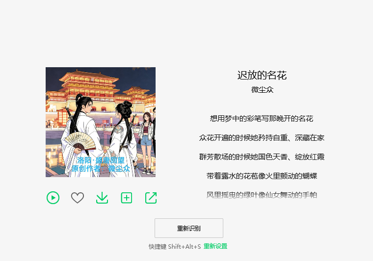 《迟放的名花》由微尘众独立完成词曲创作,紧紧扣住专辑《洛阳城里看盛唐》的核心内核,将盛唐的恢弘气韵与洛阳牡丹的傲然风骨,尽数融入旋律与字句之间。旋律舒缓婉转,自带国风独有的温润质感,前奏轻柔如洛水微风拂过耳畔,副歌层层递进,将迟放的遗憾与绽放的璀璨交织得恰到好处,满溢东方美学的诗意意境。
