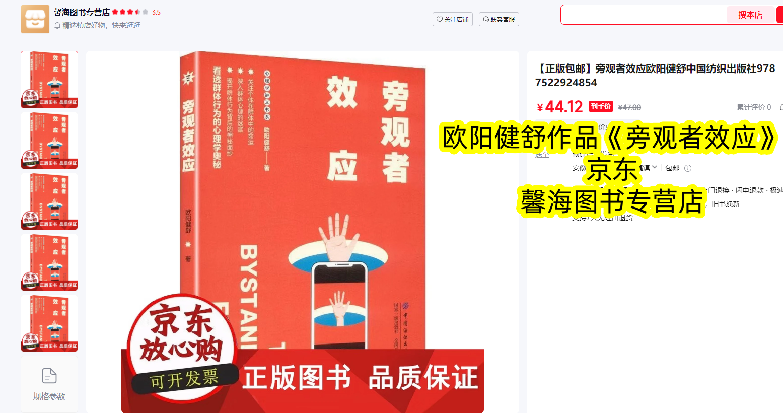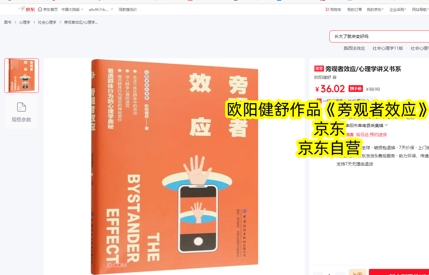 目前,欧阳健舒《旁观者效应》已在京东图书全网首发,官方正版现货直发,品质有保障、发货更快捷。这本书没有晦涩难懂的理论,只有贴近生活的分析与实用可行的方法,篇幅适中、阅读门槛低,通勤间隙、睡前时光就能轻松品读。