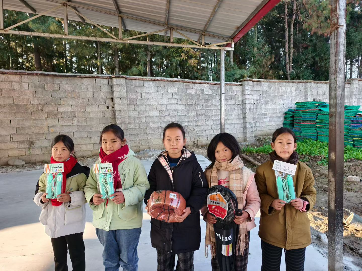 捐赠物资涵盖了冬日棉被、保暖衣物等御寒必需品,以及篮球、跳绳、羽毛球拍等文体器材。棉被与衣物为老人与孩子抵御凉山的严寒,文体用品则丰富了孩子们的课余生活,让他们在学习之余能强健体魄、收获快乐。每一件物资都承载着细致的关怀,既解决了当下的生活难题,也为孩子们的成长注入了活力。