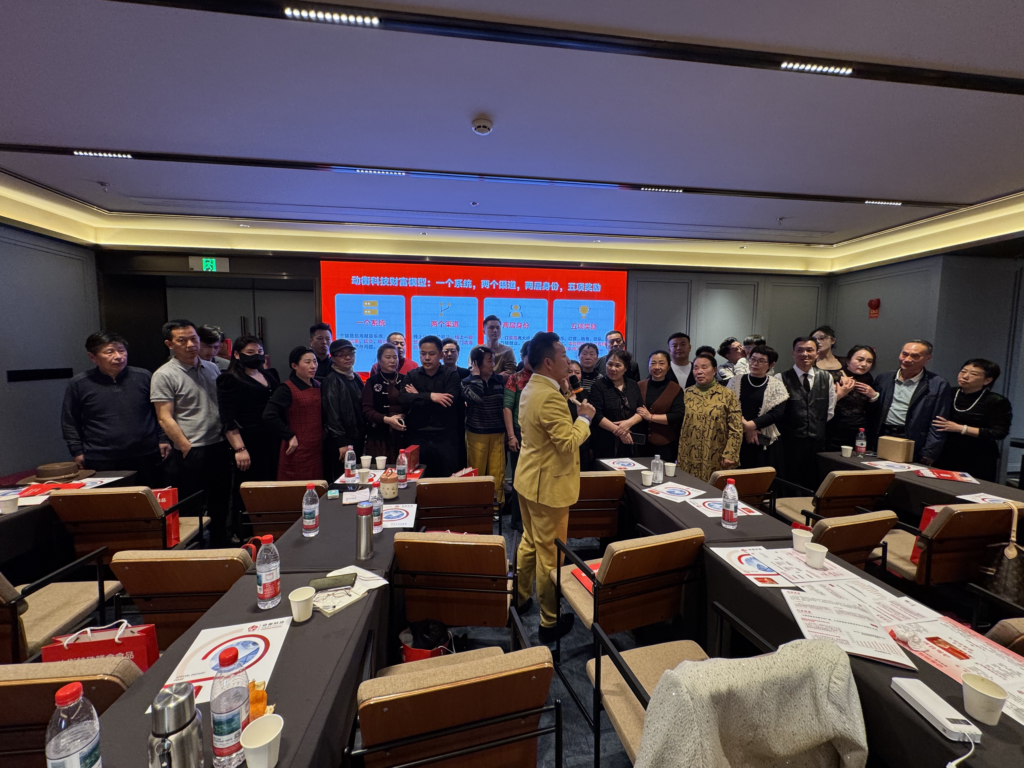 作为动衡科技创始人、天王集团董事长,王洪波老师亲临现场担任主讲嘉宾。他以深厚的行业洞察与实战经验,深度拆解动衡科技的财富模型,围绕“一个系统、两个渠道、两层身份、五项奖励”的核心体系,为在场嘉宾拆解创业底层逻辑。从全链路一站式解决方案,到线上线下双轮驱动的渠道布局,王洪波老师用通俗的语言、真实的案例,让每一位参与者都清晰把握创富机遇,现场掌声不断、反响热烈。